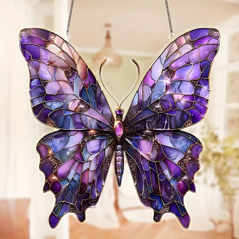 🦋Beautiful Purple Butterfly Stained Art Ornament (8 inches)