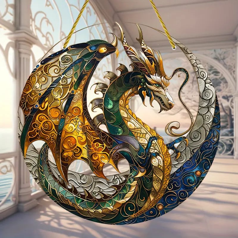 Majestic Dragon Stained Art Ornament (8 inches)