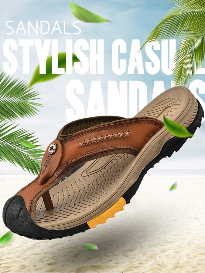 Men's Summer Open Toe Herringbone Leather Casual Sandals
