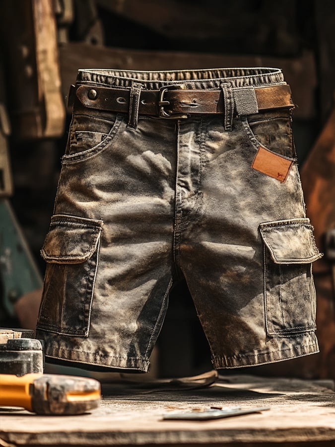 Vintage Old Multi-Pocket Cargo Shorts For Men