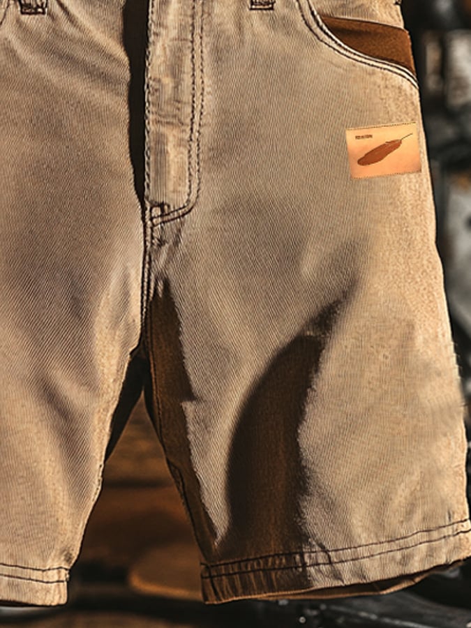 Men's Vintage Outdoor Pocket Functional Leather Stitching Cargo Shorts (without belt)