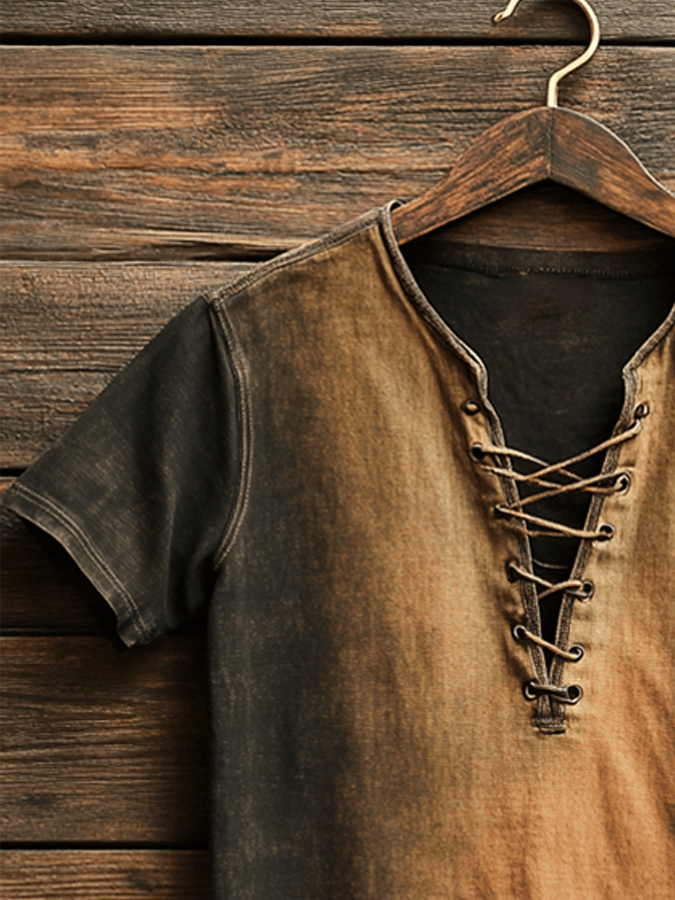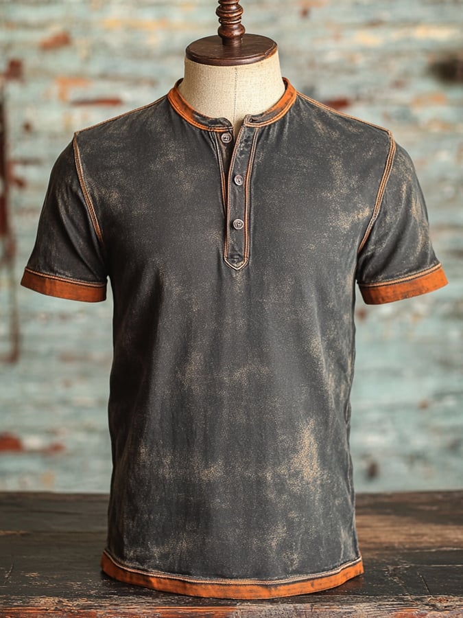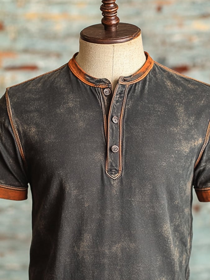 Men's Basic Fashion Retro Casual Gradient Henley Neck T-Shirt