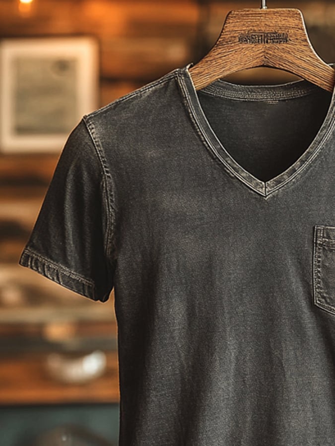 Men's Retro Classic Pocket V-Neck Short Sleeve T-Shirt