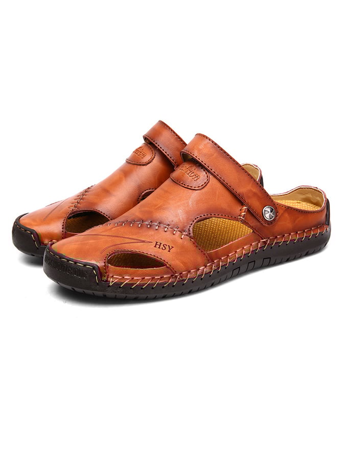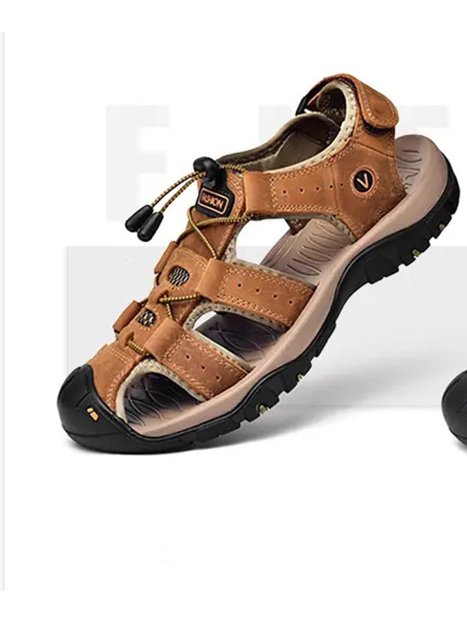 Men's Summer Open Toe Herringbone Leather Casual Sandals