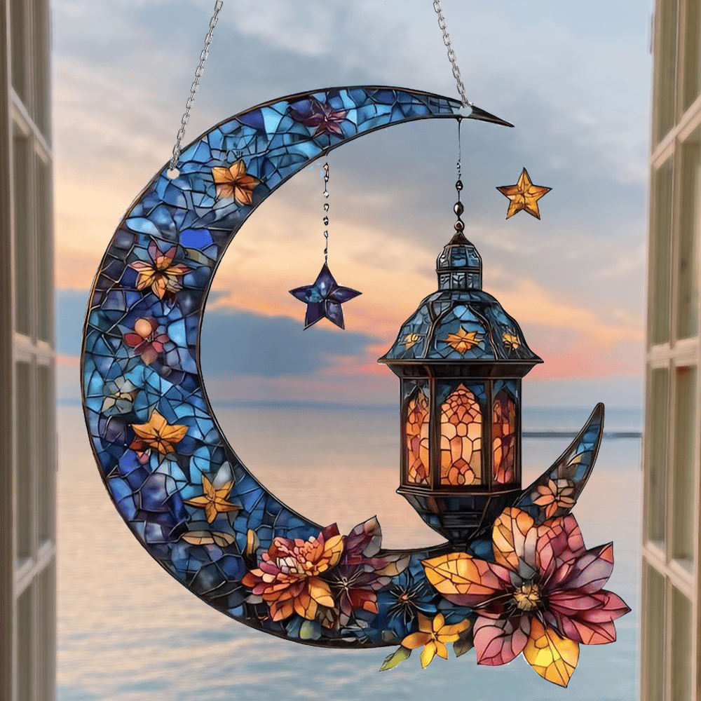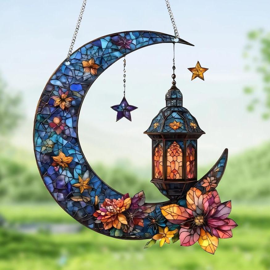 - 1 x Moon Floral Lantern Stained Art Ornament