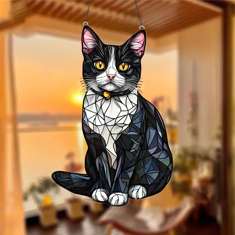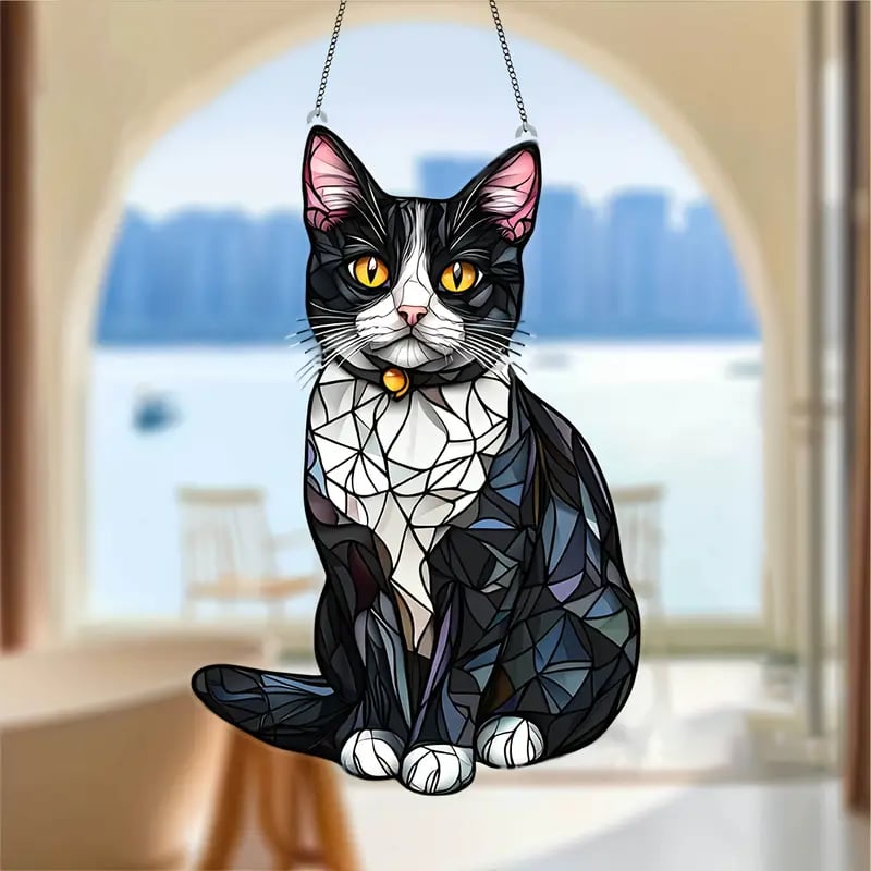 Whether for birthdays, holidays, or just because, the Tuxedo Cat Stained Art Ornament makes a heartwarming gift for anyone who loves cats and appreciates quiet companionship. Its soft colors, golden accents, and soulful design make it a piece to treasure.