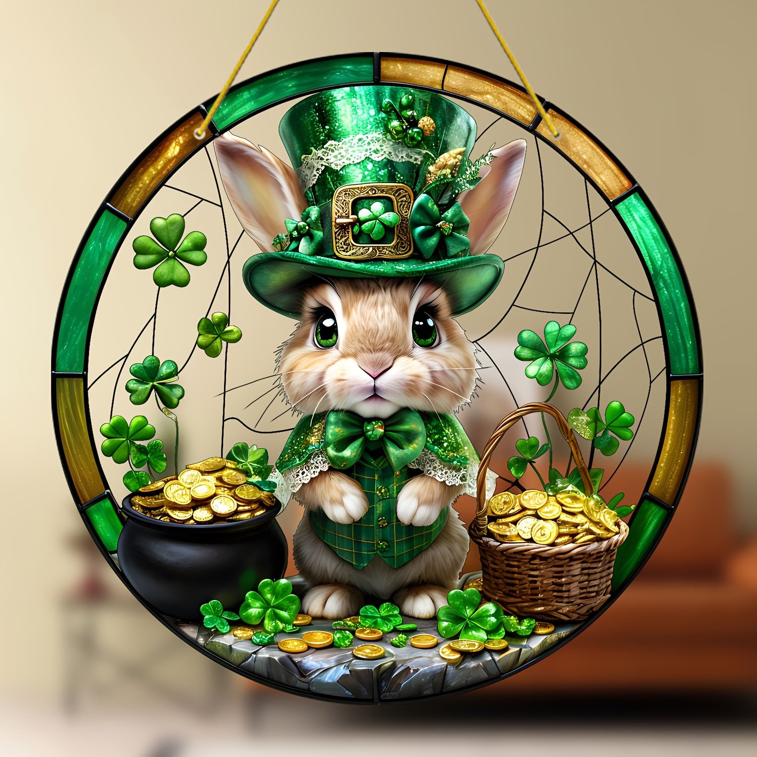 1 x Lucky Bunny & Shamrock Stained Art Ornament
