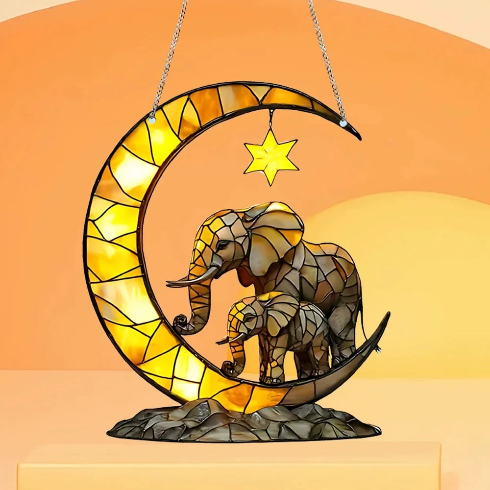 - 1 x Moon & Elephants Stained Art Ornament