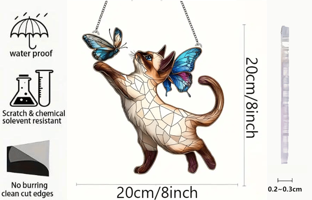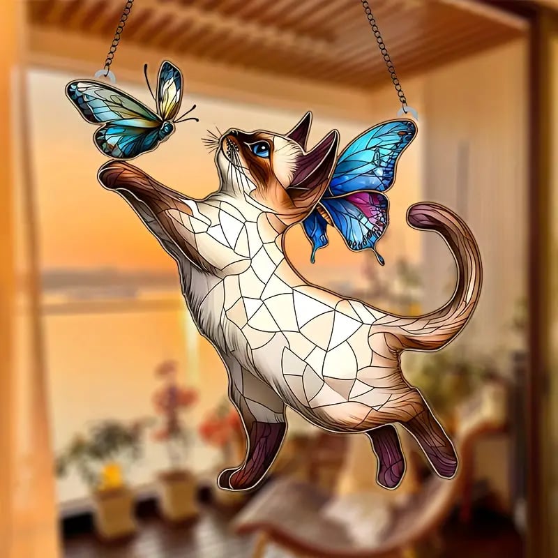 - 1 x Siamese Cat & Butterflies Stained Art Ornament