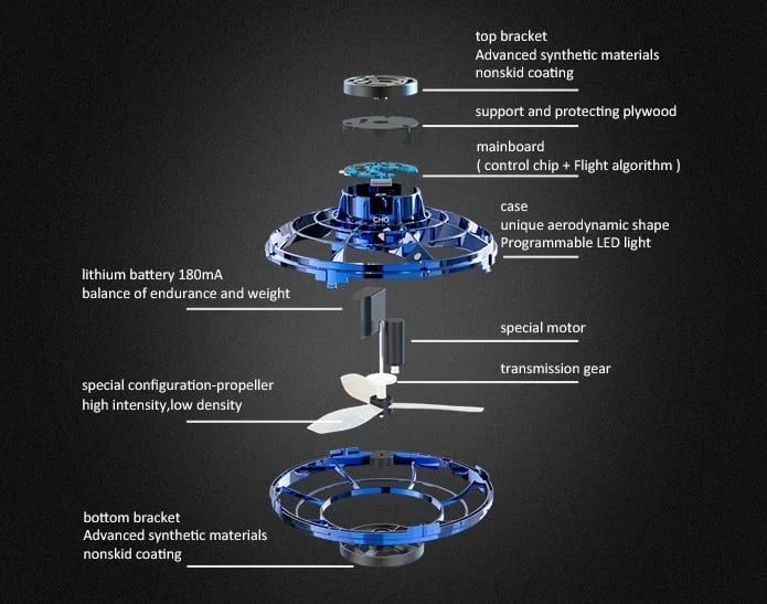 It features an aerodynamic enclosed orb design allowing it to effortlessly glide through air leading to an extremely fun and addicting experience. Toss it up and watch it fly, float, glide, and climb before hovering back to your hand like magic!