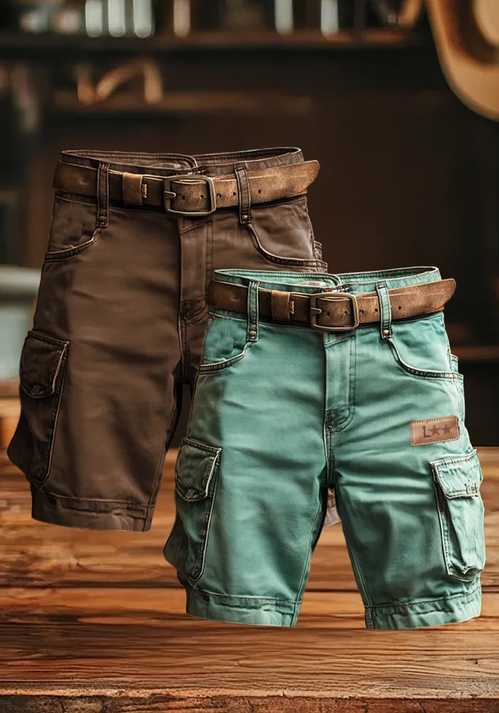 Inspired by classic American workwear, these cargo shorts combine everyday function with time-worn character. Crafted from durable washed cotton, they offer a lived-in look and feel right out of the box. The earthy green tone, reinforced stitching, and functional utility pockets bring vintage style into the modern man’s wardrobe.