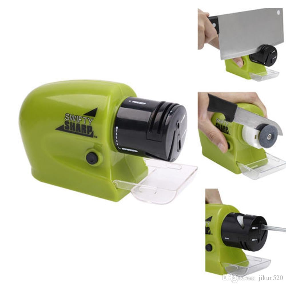 The Swift Sharp - Cordless Motorized Knife Sharpener offers precision power sharpening at a fraction of the price and it's cordless, making your sharpening as convenient as ever.