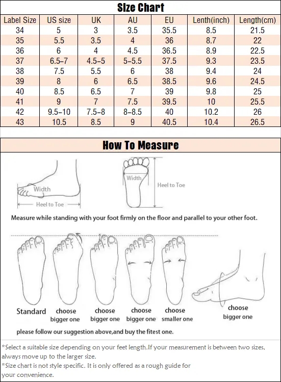 Note2: If you have wider feet, it is recommended to buy one size larger.